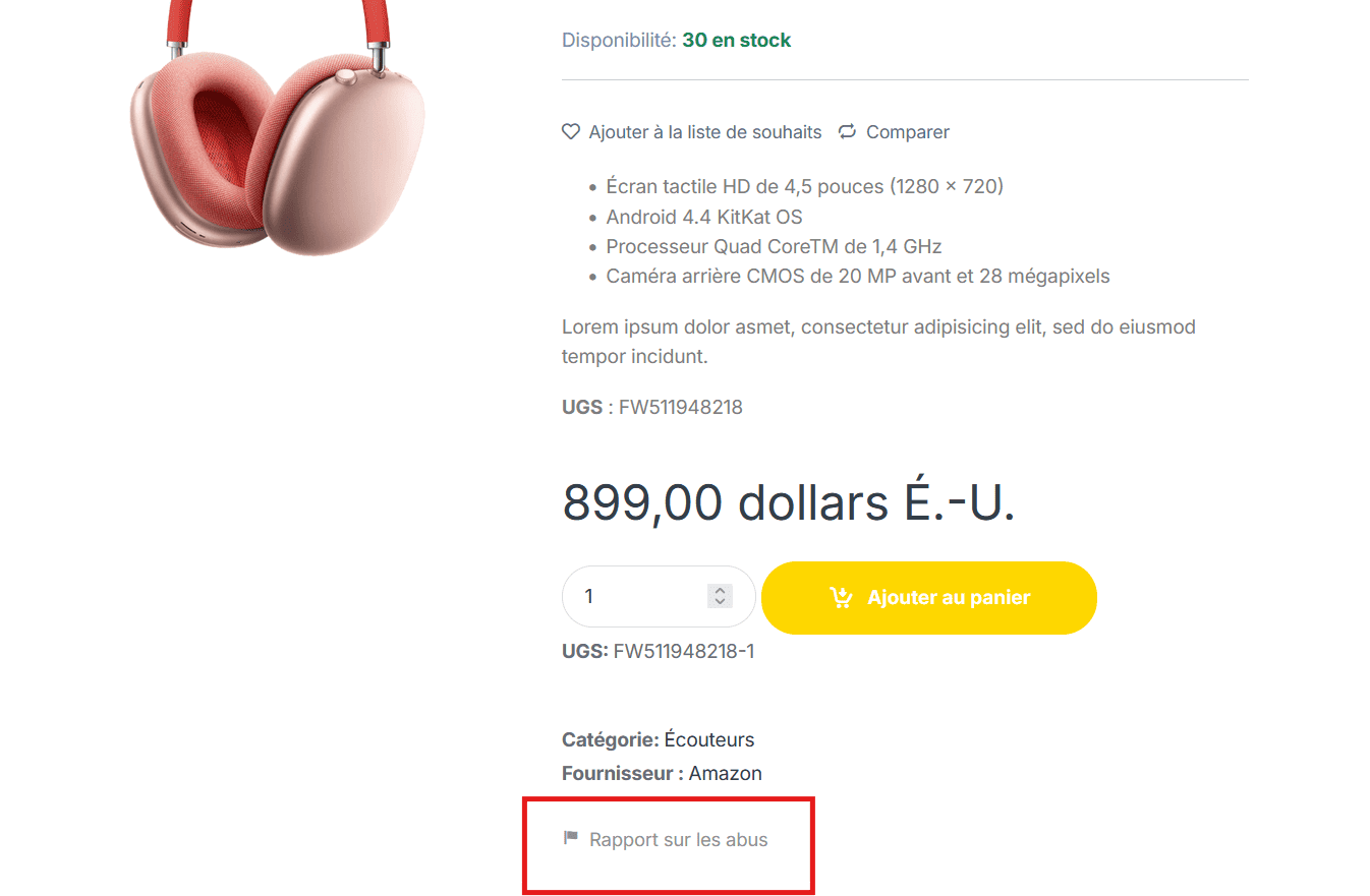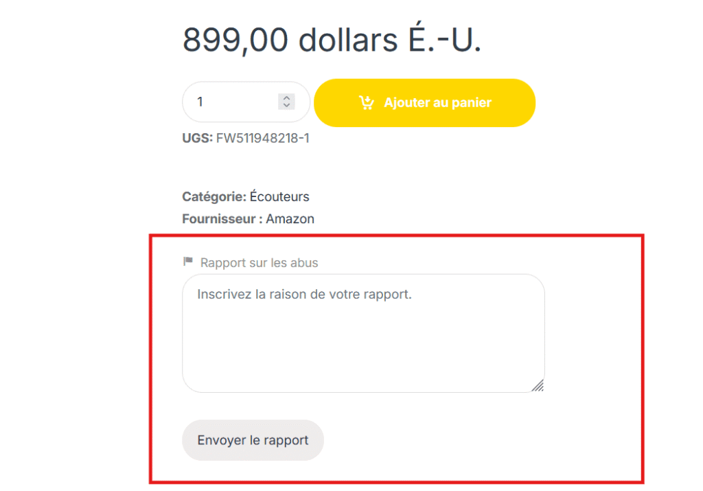• Repérez le petit bouton « Signaler un abus » situé sous chaque produit.